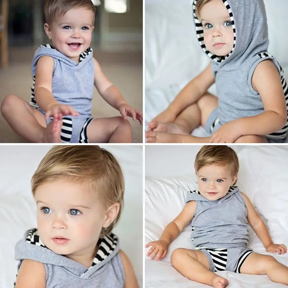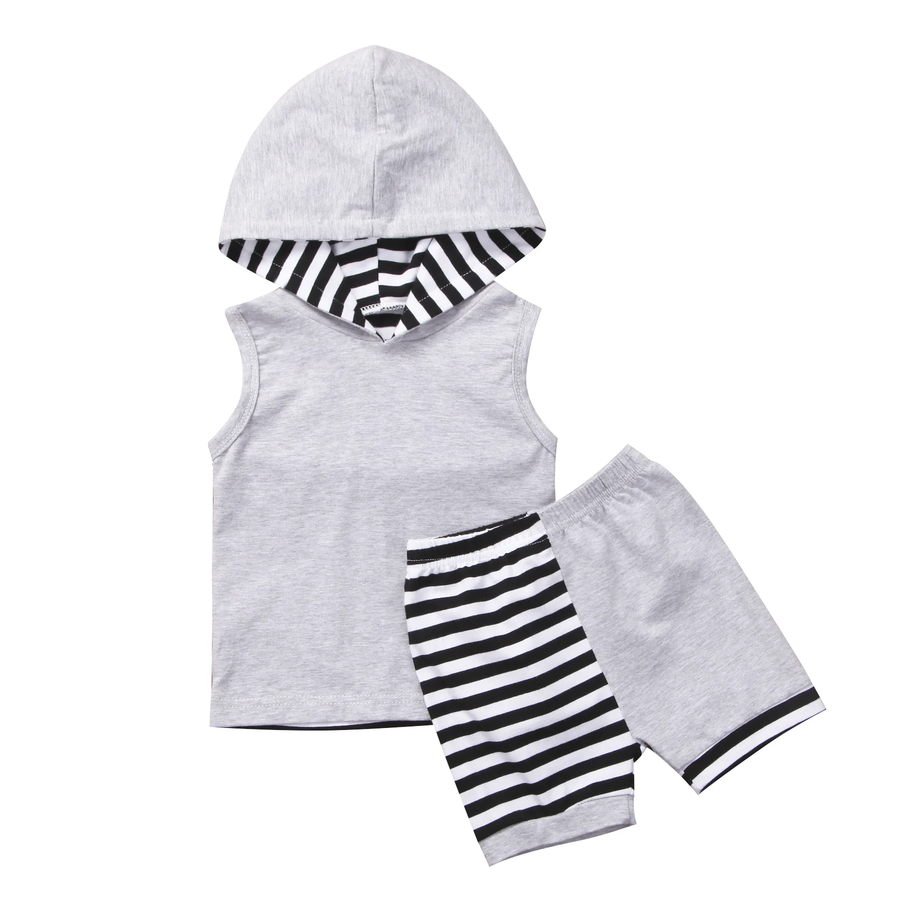 0 Response to " 2019 New Summer Casual Kid Toddler Baby Boy Sleeveless Gray Clothes Hoodie Top Striped Short Pant C"