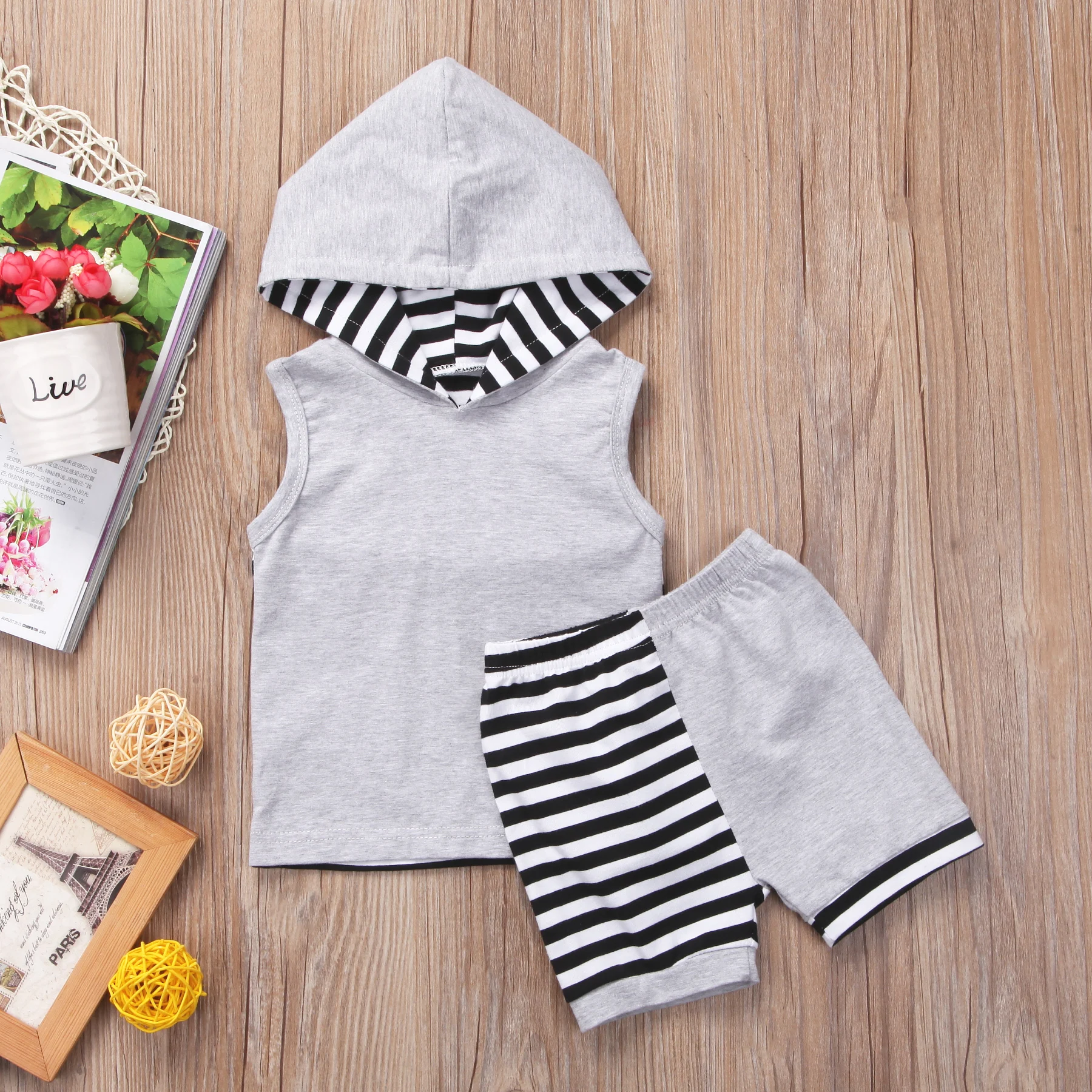 Buy 2019 New Summer Casual Kid Toddler Baby Boy Sleeveless Gray Clothes Hoodie Top Striped Short Pant C Right Here and Right Now Just for USD US $3.23, Price will be rise up at any time without notification and I cant guaranted that the stock is still available tommorow or next hour. So Please Save It Now!